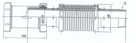 该膨胀节由内外套装波纹管及两端接管构成,它与管道一端采用螺纹联接,另一端采用插入式联接。通过内波纹管的柔性变形来吸收管道的轴向位移,横向位移和角位移,且外波纹管对内波管具有安全保护作用.该类膨胀节结构简单,安装维护方便快捷,因而凡是在煤气进户 管道可能的地方应优先予以考虑。