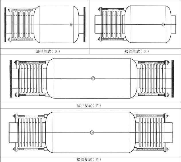 直管旁通压力平衡型补偿器主要用于补偿管系的轴向位移,具有设计简单,补偿量大,无内压推力等优点,但价格较高。主要应用于口径较大,压力较高且固定支架设置不易的直线管系。产品详细介绍 设计依据和设计条件 2. 设计条件: 公称通径:DN65-1000mm; 设计压力:0~2.5Mpa; 设计温度:+350℃(使用温度≤450℃); 法兰标准:JB81-59。 产品结构简图