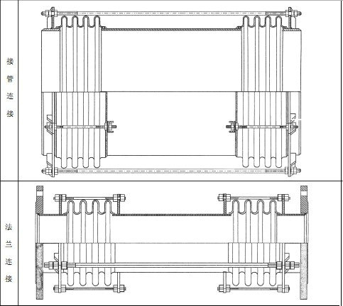 大拉杆横向型补偿器补偿器由两段波纹管、中间接管及大拉杆等零件组成,它能吸收管系任意平面内横向位移。位移时大拉杆上的球面螺母绕球面垫圈转动,同时大拉杆还具有承受内压推力的能力。大拉杆横向型补偿器由两段波纹管、中间接管及大拉杆等零件组成,它能吸收管系任意平面内横向位移。位移时大拉杆上的球面螺母绕球面垫圈转动,同时大拉杆还具有承受内压推力的能力。 安装使用注意事项: 1. 补偿器上的小拉杆是安装运输“冷紧”用的,不可作为承力件;产品在管道安装完毕后,需将其拆除,方可投入运行。 2. 当补偿器的横向位移量要求较大或者系统压力较高时,可对补偿器进行“冷紧“,冷紧量是实际横向位移量的一半。冷紧方向与横向位移方向相反进行。产品结构简图